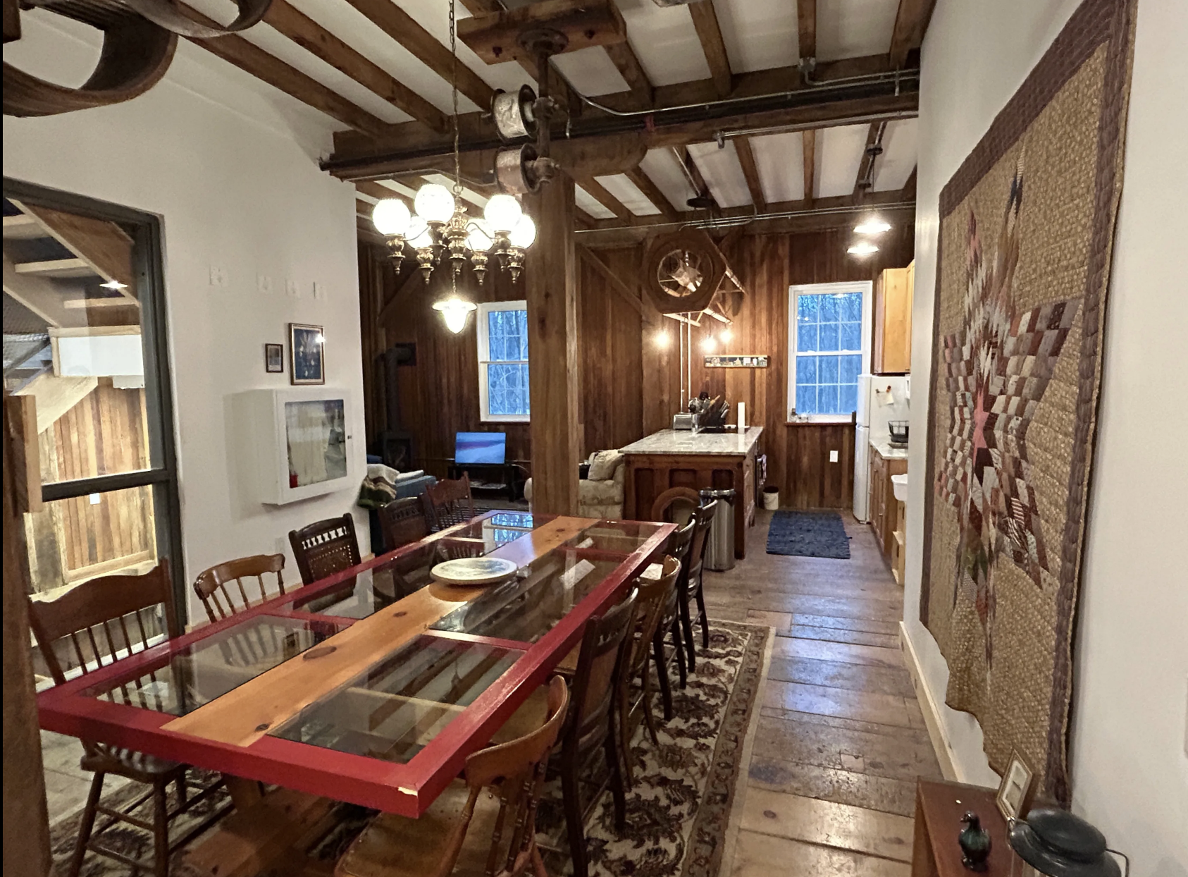 The retreat space is large and thoughtfully laid out, with multiple areas for shared meals, group gatherings, and unhurried conversation. There is room to sit together by the fire, linger in shared spaces, and feel the ease of being among others who understand.