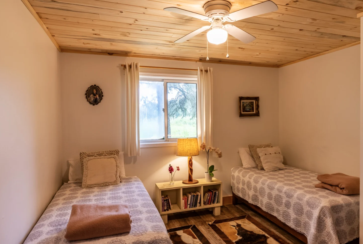 The lodge offers eight bedrooms, each with two twin beds. Every room has been thoughtfully decorated with original artwork created by the loving hands of many people’s grandmothers—embroideries, paintings, prints, books, and soft textiles that bring warmth and a sense of home. Comfortable mattresses, good-quality bedding, wool blankets, and duvets are provided to support deep, restorative sleep.